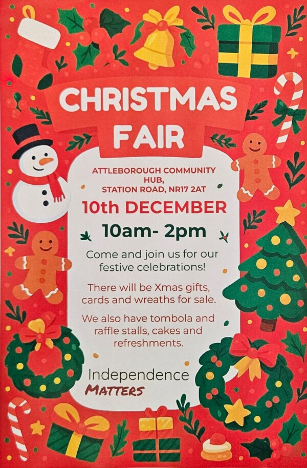 Attleborough Community Hub is holding a Christmas Fair on 10th December 10am to 2pm.